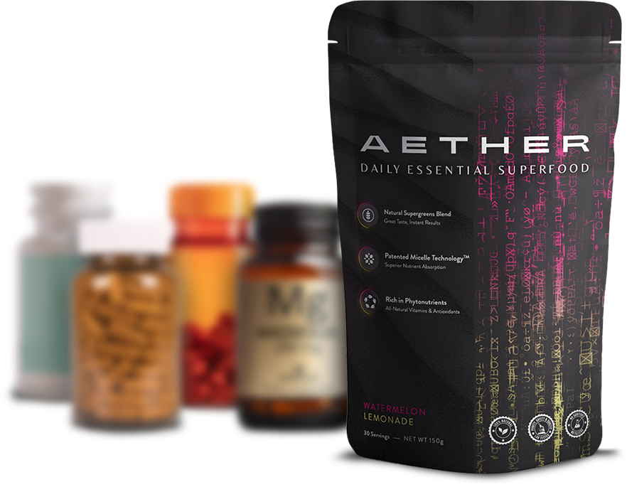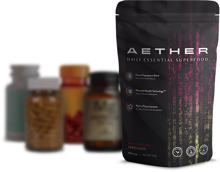 AETHER is a premium greens supplement designed to deliver focused support for key health functions. Our formula uses a curated list of high-impact actives — not a kitchen-sink blend — many of which are emulsified and encapsulated in-house for enhanced absorption. The result: deeply functional nutrition supported by robust scientific evidence.