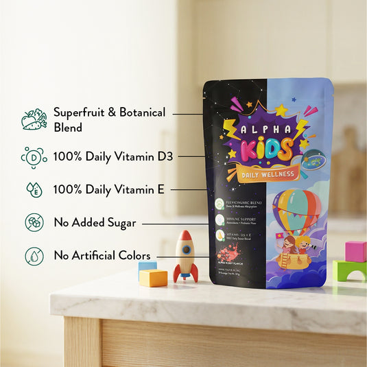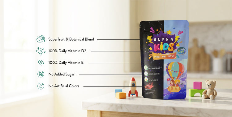 Fuel your little ones with nature’s best. Alpha Kids Daily Wellness combines superfruits, botanicals, vitamins, minerals, and antioxidants to support energy, focus, and immune health — all in a formula made just for growing kids.